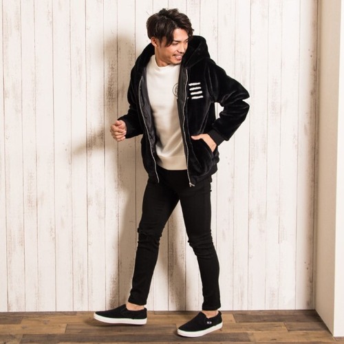 滑らかな肌触りと高級感漂うフェイクファー素材が特徴のパーカーブルゾン。