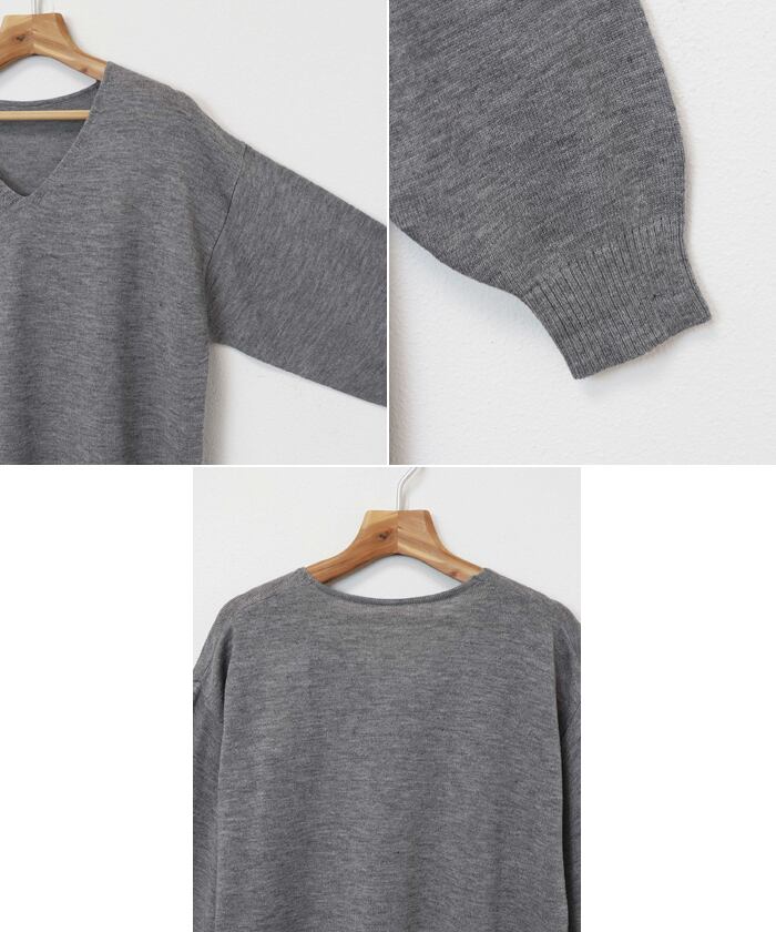 アクセが映える、すっきりとしたVネック、お袖はさりげなくバルーンシルエットに。